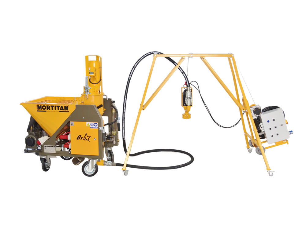 GT5 适宜于水泥基、石膏基及保温砂浆喷涂。自动加水搅拌的全自动机型。使用简单,机型紧凑。